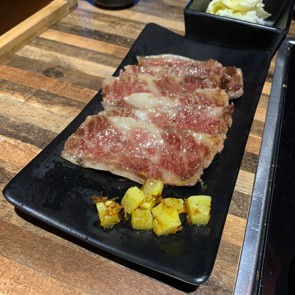 侍應會拎埋個石板燒爐去顧客嘅枱面,即場燒和牛畀我地,仲好體貼咁問我地落鹽嘅份量,燒完嘅和牛入口即溶,不過因為都多油,食完會覺得有啲滯,所以燒和牛嘅同時都有燒埋啲黃蘿蔔粒,食完牛食返啲黃蘿蔔粒都幾清新。