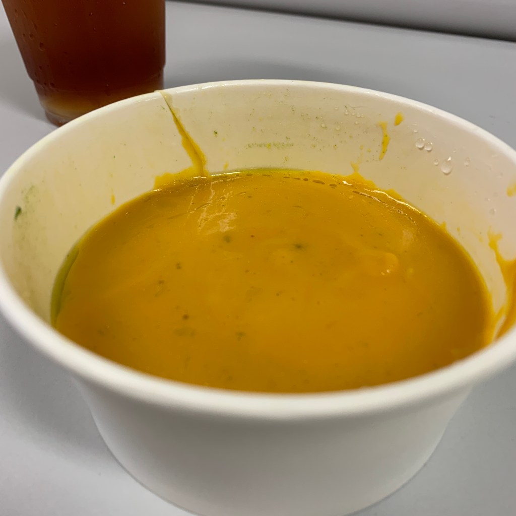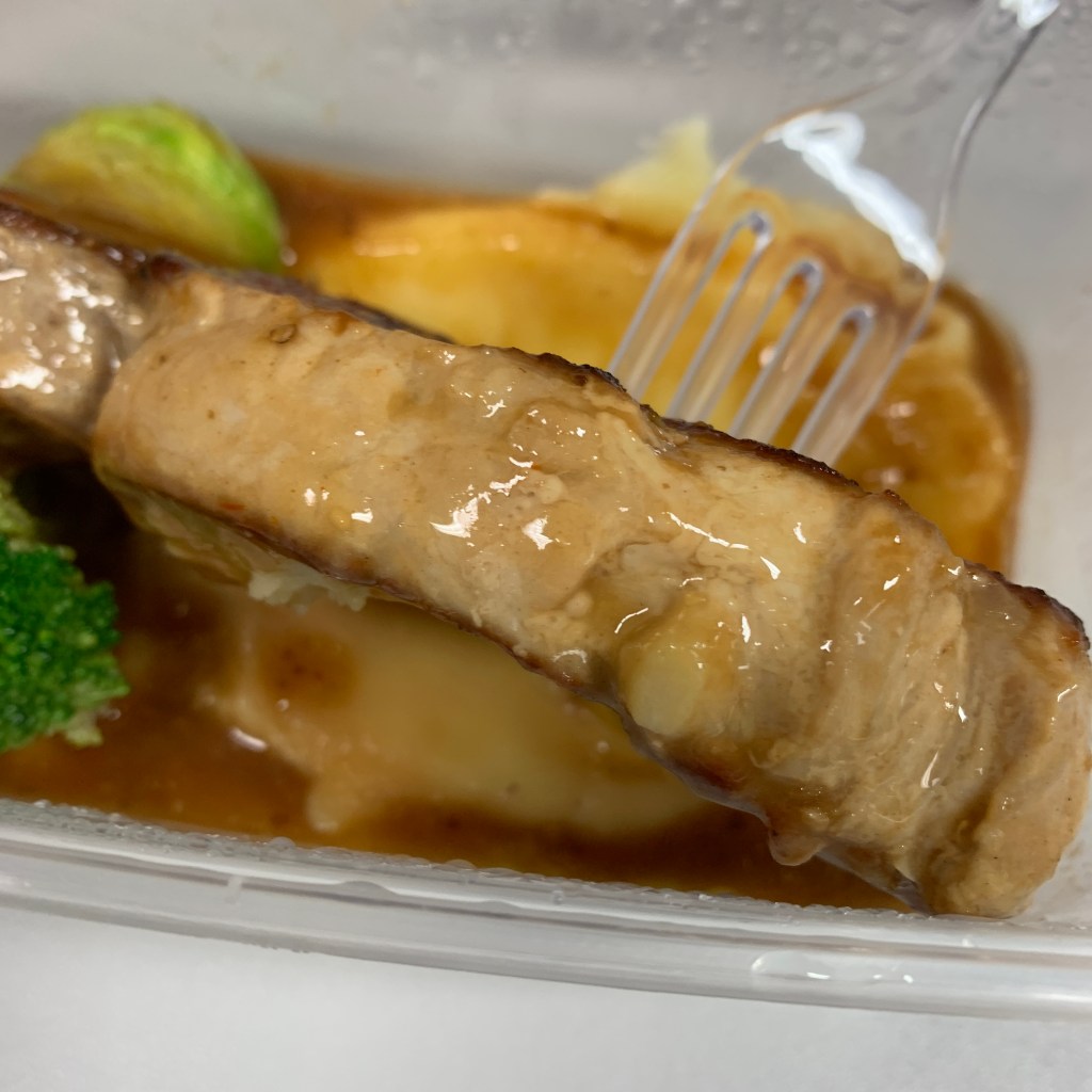 南瓜湯好濃,好似食緊南瓜蓉咁,個味都好夠,入面有啲黑椒,如果一不留神咬咗落去都幾刺激🤯 主菜塊豬肉眼扒真係非常非常厚,面同底煎得有少少少少脆,一用刀切落去嗰吓,哇點解咁易切嘅,一切就知塊扒唔會韌,食落口仲有少少外脆內軟嘅感覺,肉質好鮮嫩,啲汁更加將塊豬扒啲豬肉味襯托出嚟。伴碟有西蘭花同椰菜仔,因為個外賣盒唔夠位,啲薯蓉就墊咗喺塊豬扒嘅下面。杯凍檸茶個茶底同普通茶記飲嘅唔同,係用咗高級茶記啲「芒果紅茶」、「蜜桃紅茶」嗰啲百搭紅茶特飲嘅茶底,本身order凍檸茶都無expect過係呢隻底,真係有「哇正呀」嘅感覺🤪