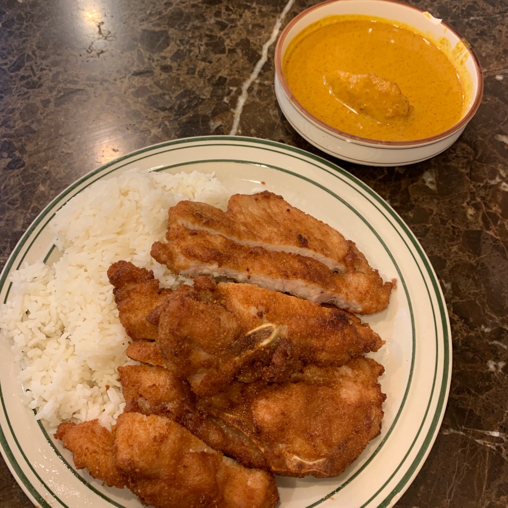 到碟飯同碗咖喱汁嘅時候,我諗你絕對唔會再對95蚊呢個價錢有所質疑,仲會覺得抵到爛。豬扒係即叫即炸,上菜嘅時候好熱,咖喱汁同啲飯都只係暖暖地。豬扒佔隻碟嘅大約八成位置,飯就有碗半飯左右嘅份量,咖喱汁入面有嚿大薯仔,唔係稀框框嘅,辣辣地好惹味,好彩個汁唔熱,如果唔係真係辣死。塊豬扒就真係一試難忘,個面炸得好脆,豬扒唔係瘦嘅豬扒,基本上每嚿都有啲脂肪,肉質鮮嫩鬆化仲勁多肉汁多到咇出嚟,外脆內軟。