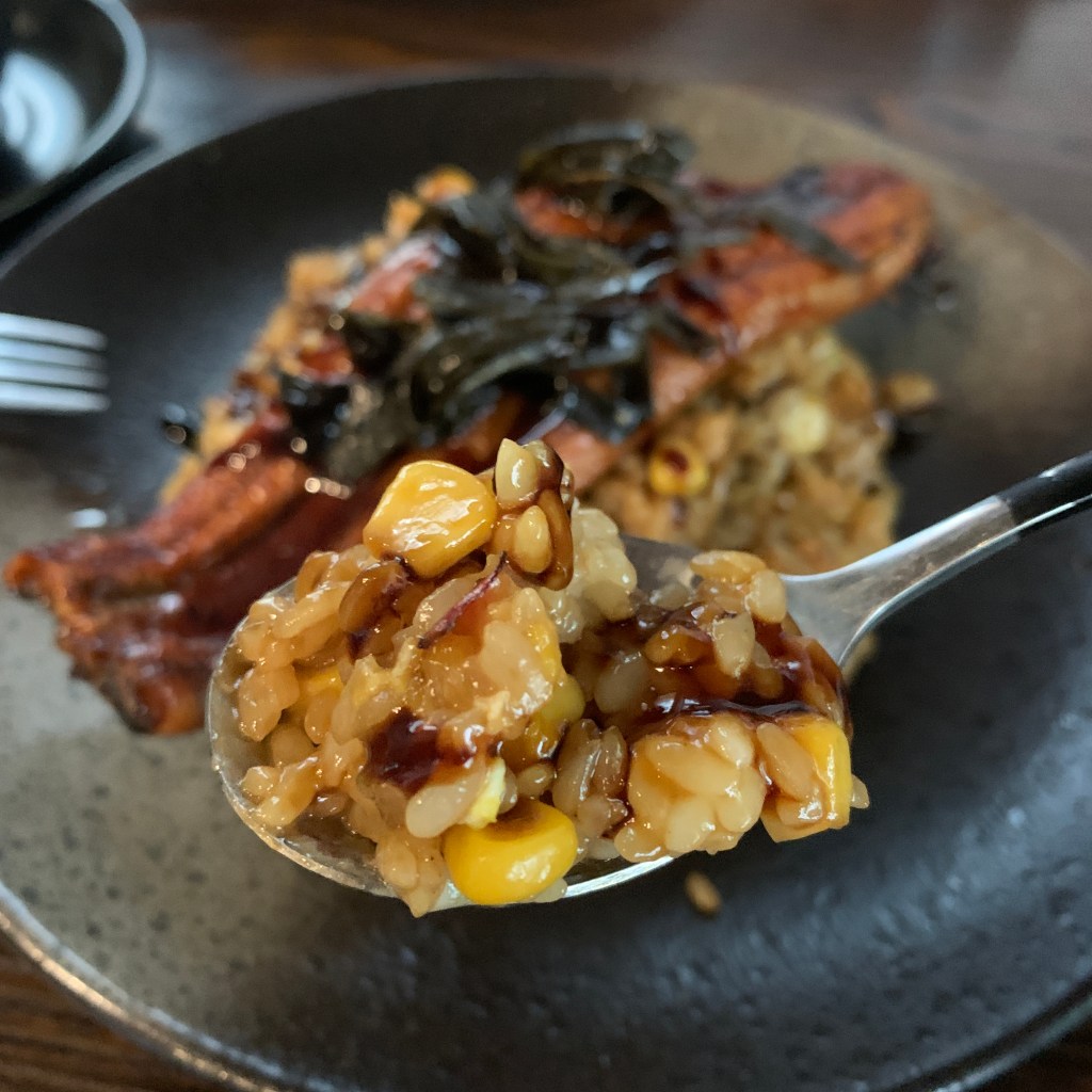 我哋今次先試吓呢個鰻魚炒飯,原本無睇清楚唔知係炒飯,上菜嘅時候見到個飯咁足料真係幾驚喜🤩 飯入面有粟米有洋蔥有冬菇仲有啲瓜粒,幾有咬口,啖啖都有唔同嘅配料入到口,唔怕悶😗 條鰻魚唔係勁厚肉勁煙韌嗰隻,有啲似小編之前喺大阪食嘅鰻魚,薄薄地但燒得好香。98蚊有杯茉莉花茶飲仲要唔收加一,算係幾高質素😛