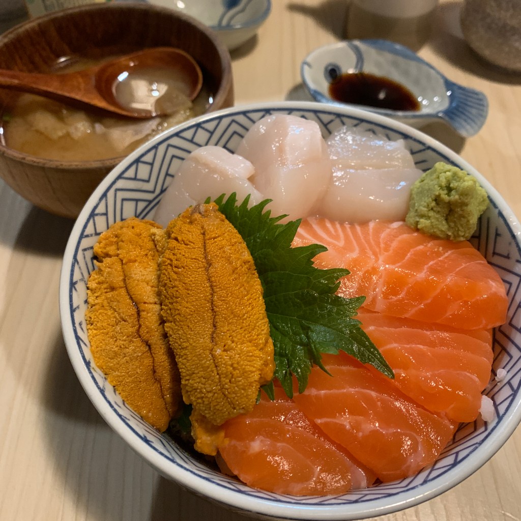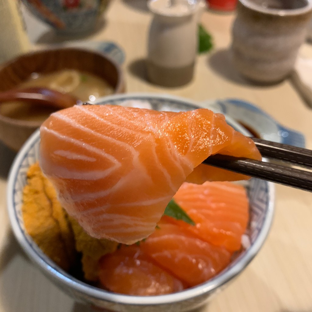 餐牌入面仲有個$148嘅「厚切三文魚雙子丼」,同「北海道三式丼」一樣有三文魚同帶子,唔同嘅係雙子丼有三文魚子,但三式丼就有海膽,諗咗好耐加90蚊三文魚子轉海膽抵唔抵,好彩食落口發現自己無揀錯😆 海膽無苦味,好清甜勁新鮮,三文魚勁厚切,feel到啲魚油,帶子就好大粒好鮮甜,度過每粒有5cm😂 啲wasabi都係日本正宗嗰啲,但小心如果一大嚿啪入口都會好似食TG咁🙈 整體嚟講超高質,正到哇哇聲,唔夠飽仲可以加麵豉湯同加飯🥳