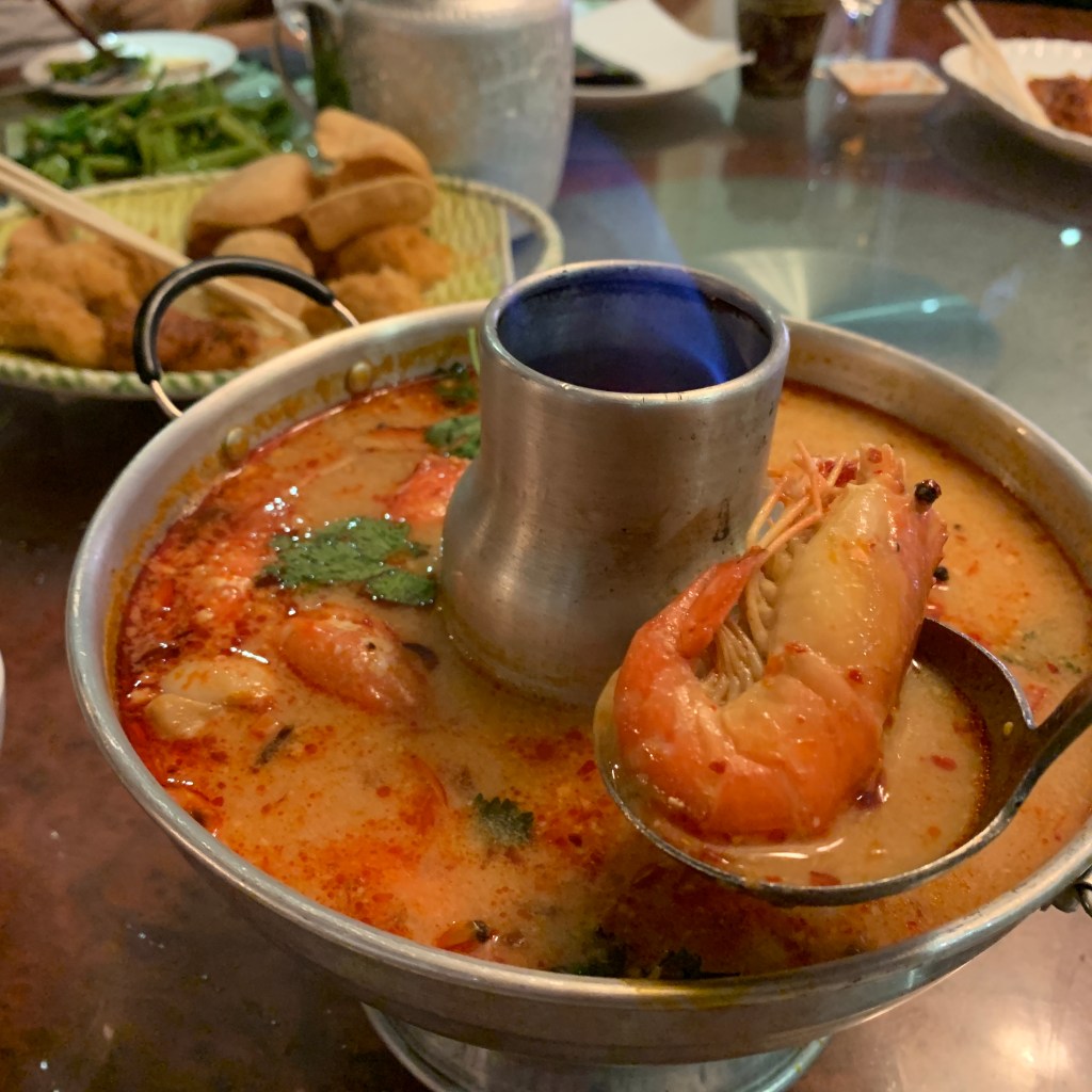 👉🏻 講泰菜大家都一定第一樣諗到冬蔭公,但唔係人人識解咩叫「冬蔭公」,冬蔭(Tomyum)喺泰文係解「湯」,而「公」喺泰文就係解「蝦🦐」,所以冬蔭公係一定有蝦嘅!呢煲湯唔係好辣,入面有勁多蝦,仲有啲草菇等等嘅配料,真係「湯好飲」呀🤣