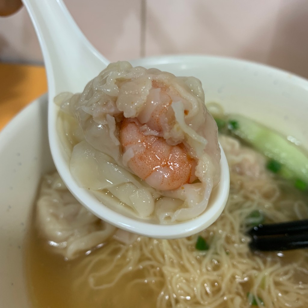 細細碗麵有5粒雲吞,雲吞一粒一啖都食到而且入面好足料,不過塊皮就唔算薄⋯⋯入面嘅蝦細細隻勁彈牙,豬肉亦都唔多,質素都算高。而個麵都好彈牙同無鹼水味,唔錯!