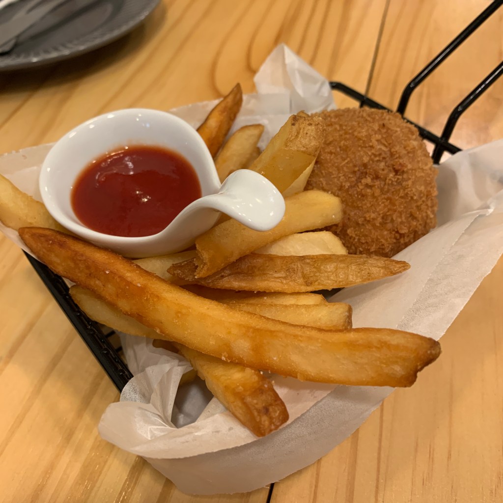 呢份就包埋薯條,全部都即炸嘅。個炸蛋係用漢堡扒包住隻溏心蛋嚟炸,外面炸得好脆!薯條就一樣外脆內軟,薯味勁香😋