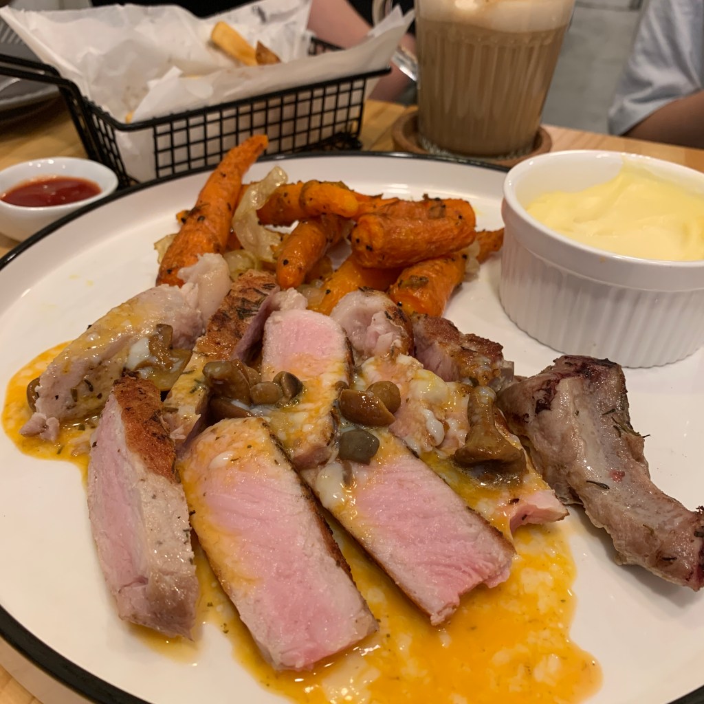 呢份加拿大豬扒係經過特別處理鎖住水份再慢煮,外皮有少少脆但肉質超滑超鮮嫩,經過慢煮再煎香,外皮有少少脆但肉質超滑超鮮嫩,脂肪比例平均令到有少少入口即溶嘅感覺🤤 豬扒下面係溫泉蛋汁,點埋一齊食都幾夾。甘荀就煎過嘅,但煎完之後入面嘅甘荀都好腍。薯蓉真係勁surprise,超creamy!呢個set真係超水準咁好食!