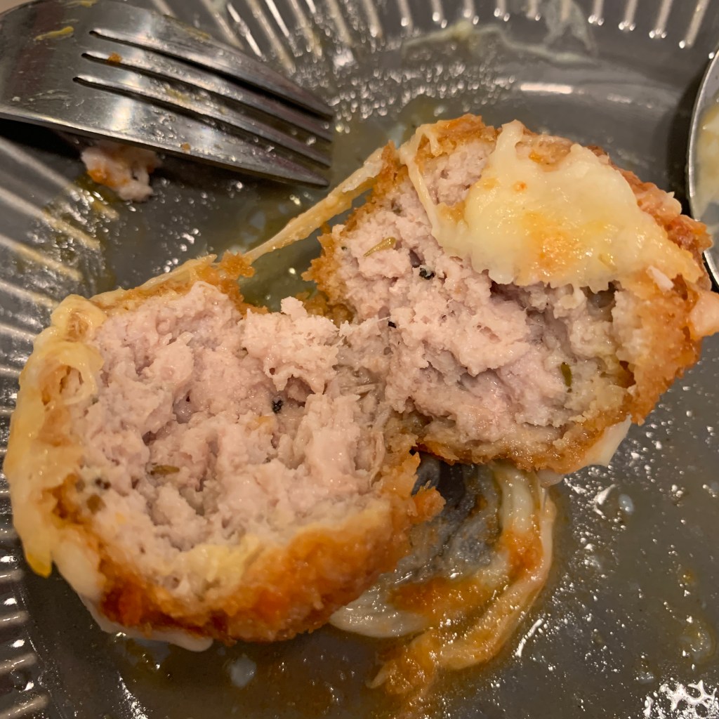 呢個肉丸嘅肉就即係土製炸蛋個面,不過無炸脆到同換咗茄汁同芝士,啲芝士新鮮到可以拉絲㗎🤣 大大粒都幾飽肚~