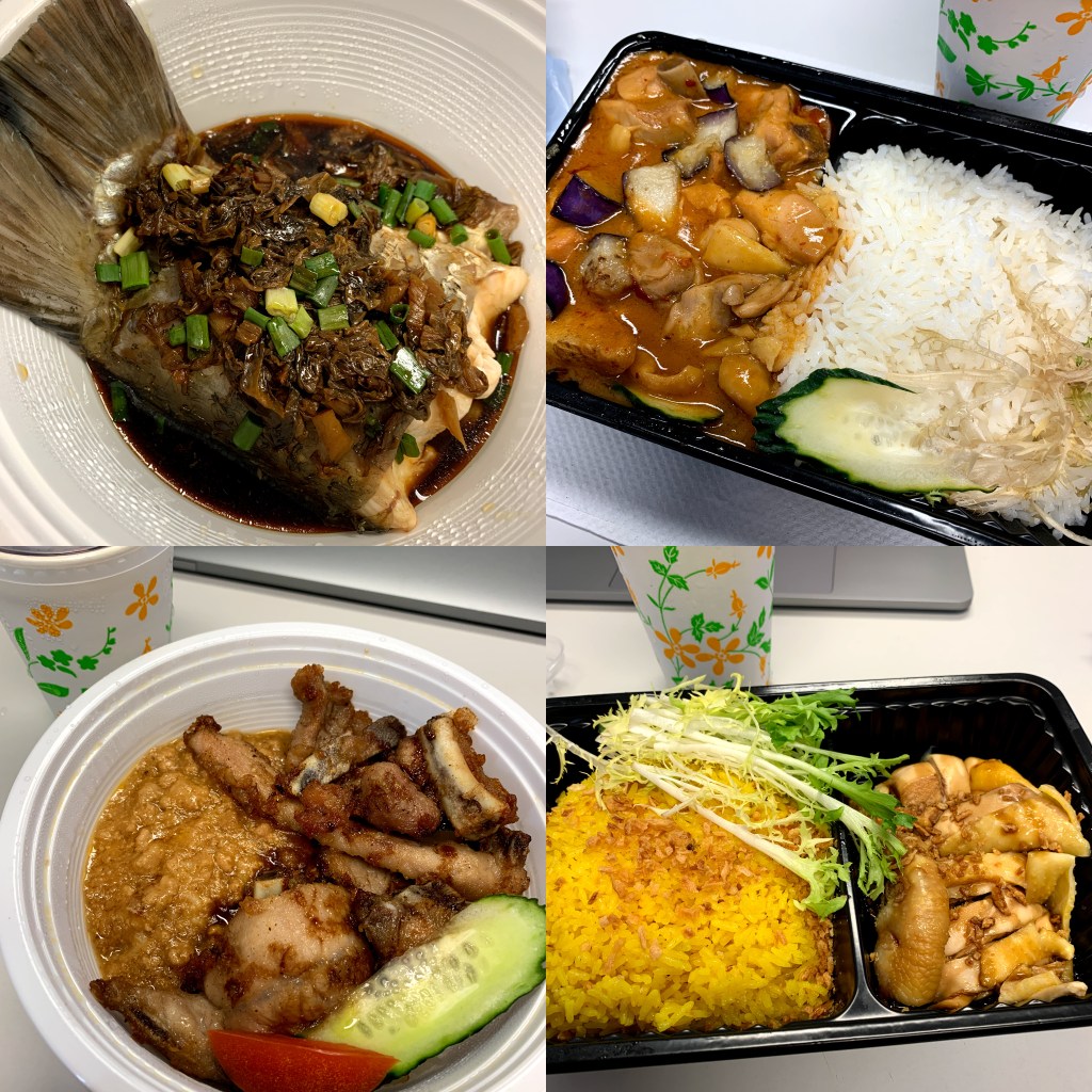 梅菜蒸鯇魚、小炒皇、齊上齊落東坡肉飯、泡菜肉餅飯、滑蛋蝦仁飯、海南雞飯