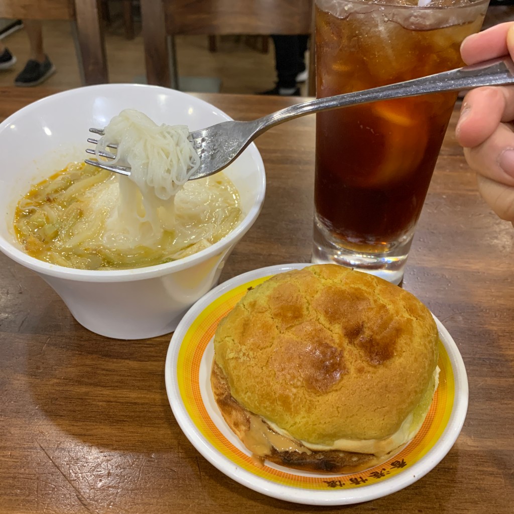 $25係「早起的鳥兒價」,平日9點半後同埋星期六日同假期8點半後要貴3蚊,但都好抵啦😆 平時好少將花生醬擺落菠蘿包度,要用牛油做菠蘿油先無咁乾,但八道嘅花生醬菠蘿包又ok喎,而個「迷你」米粉都絕對唔迷你!米粉係好幼嗰啲,雪菜肉絲嘅粉量都好多😚